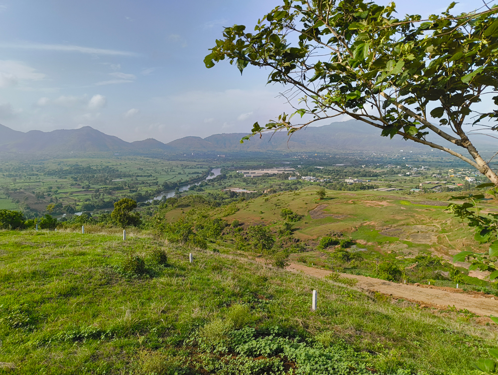 In the Sahyadri Range of Western Maharashtra, 60 acres of rolling hills, dense forest groves, a perennial river, seasonal water channels, flat lands, lakes and trails look out towards the surrounding farmland and the distant Pawana dam and reservoir. A private drive leading from the public road to the peak of the land and beyond provides access to and through the mixed use development of Gaia Hills.