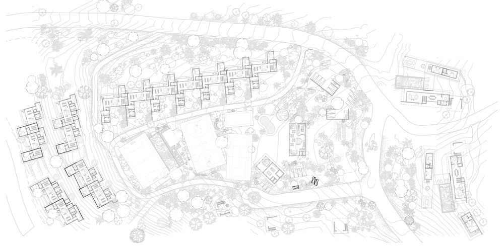 The masterplan responds sensitively to the site's natural topography, vegetation cycles, and microclimatic conditions, to help locate a central community township, medium density house units, private villas and experiential structures. Programmatic offerings such as a family farm, plant conservatory, yogashala, viewing platforms, boat house, and an observatory are carefully placed at intersecting nodes of circulation and arranged along the natural contours, connected by trails and pathways that encourage exploration and engagement while balancing the social and private experience.