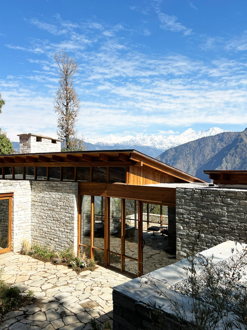 Each structure harmonizes with the existing contours of the land, balancing proximity to nature and sweeping mountain views with the warmth and comfort necessary for Himalayan winters. Against the awe-inspiring backdrop of snowcapped peaks, Prana integrates contemporary sustainable design with vernacular craftsmanship and locally sourced materials. The result is a serene and immersive retreat, offering guests an unparalleled connection to the natural and cultural richness of the region.